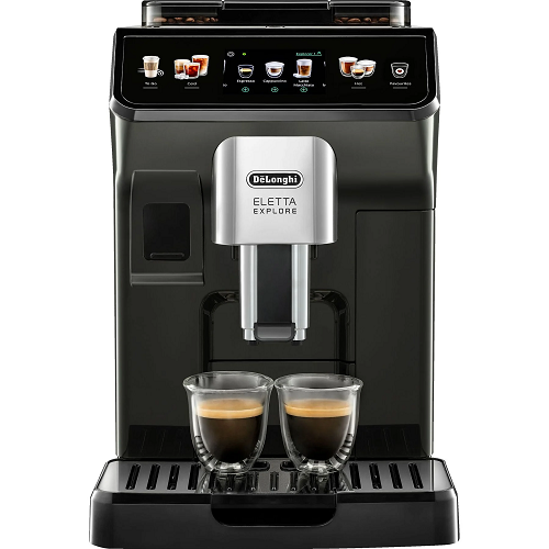 Experience the widest variety of coffees at home with the new De’Longhi Eletta Explore bean to cup coffee machine. With over 40 one-touch recipes avialble the innovative LattaCremaCool System prepares over ice, cold foamed coffees. Or, use the LatteCreamaHot system for hot lattes and cappuccinos.