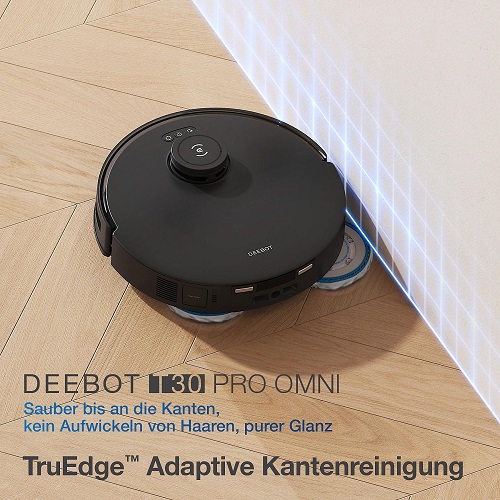 • DEEBOT T30 OMNI Robotic Vacuum Cleaner utilizes TruEdge Adaptive Edge Mopping technology to achieve precise edge cleaning. With 1mm proximity sensing and automatic retraction for obstacle avoidance, it intelligently detects and navigates around various obstacles, ensuring long-lasting and efficient performance. The highly durable structure guarantees reliable operation, while TruEdge Adaptive Edge Mopping technology improves cleaning efficiency for a thorough clean.